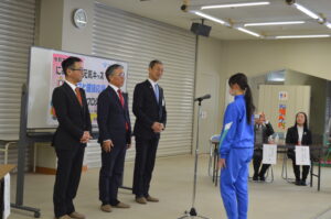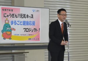 本日、アサヒ飲料株式会社北陸支店長 野村光男様、総務部長 中川和紀様、入善町長 笹島春人様、教育長 小川晋様のご臨席を賜り、「L-92乳酸菌」にゅうぜん!!元気キッズまるごと健康応援プロジェクト!スタート式が本校ランチルームで行われました。