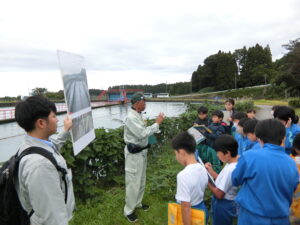 10月21日、4年生が、町ふるさと学習の一環として行われている社会学習「黒東合口用水に学ぶ」に、ひばり野小学校の4年生と参加しました。