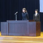 新任式 加地妙子先生、吉江純菜先生をお迎えしました。子供たちは興味津々に先生方のお話を聞いていました。お二人の先生、よろしくお願いします。