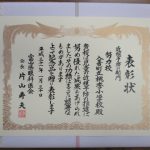 昨日、県庁において、富山県教育委員会渋谷教育長から「健康教育実践優良学校表彰 近視予防の部門 努力賞」が、授与されました。功績概要として「近視予防のための健康習慣の定着を目指し、学期ごとに視力検査を実施し、低視力者への個別指導を行うとともに家庭との連携を図っている。学校保健委員会では、「姿勢」をテーマとした劇や発表を通して、視力低下の防止を呼びかけ、目の健康を守る意識の向上を図るなど、近視予防の推進に成果を上げている。」とあります。これまでの取組を認めていただいたことを嬉しく思います。今後も児童の健康教育に積極的に取り組んでまいります。