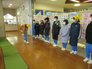あいさつ運動【企画委員会 2月7日】 企画委員会が中心となって、2月4日(火)から2月10日(月)の期間、あいさつ運動を行っています。挨拶ボランティアの子供たちも加わり、登校して来る子供たちにさわやかな挨拶を届け、温かな雰囲気に包まれました。
