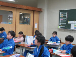 音楽でつながる【2年生 4月15日】 2年生の音楽の時間は、水島教頭先生の時間です。今日は、「音楽でみんなとつながろう」の学習で、「おはよう」「サンキュー」「シェシェ」等、いろいろな国の挨拶の言葉が出てくる「メッセージ」いう曲を歌いながら、皆と楽しくつながっていました。 また、「ビンゴ」の曲に合わせて、体を動かしたり手でリズム打ちをしたりして、楽しみました。音楽は人の心を楽しくしてくれますね。