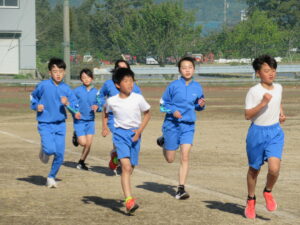 町体育大会 全体練習【4・5・6年生 5月8日】 今日から、町体育大会の全体練習が始まりました。大休憩の時間に、100メートル走とリレーに分かれて練習しました。限られた時間の中で、一人一人が真剣な表情で取り組んでいました。 本番まで、自分の力を高めていってほしいと思います。