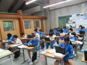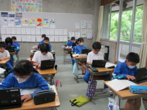 手紙で感謝の気持ちを伝える【4年生 6月11日】 4年生は、国語科で「気持ちが伝わる手紙を書こう」の学習をしています。「初めのあいさつ」「本文」「むすびのあいさつ」「後づけ」の定型で手紙を書くことを全体で確認した後、事前に書いた自分メモをもとに、ロイロノートに手紙を入力していきました。普段なかなか伝えられなかった感謝の気持ちを、この学習を機会に伝えられるといいですね。