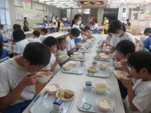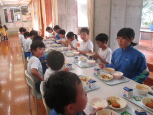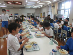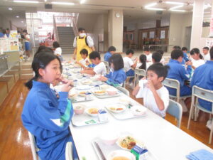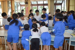 今日は、自己紹介や給食当番の役割決めを行い、この縦割り班で初めての給食をいただきました。これからの活動が楽しみです。