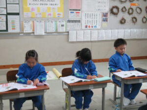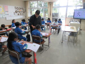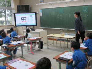 漢字を覚えよう【1年生 11月5日】 1年生の国語科の時間は、漢字練習でした。「火」と「田」の漢字の読み方や書き順、言葉集め、文づくり等に意欲的に取り組んでいました。4月にひらがな練習からスタートした1年生が、漢字を学んでいる姿を見て、成長を感じました。