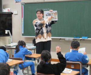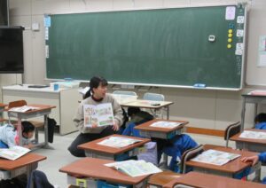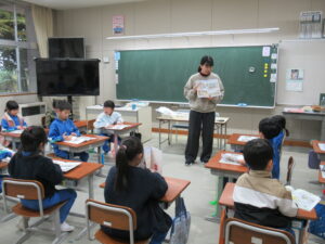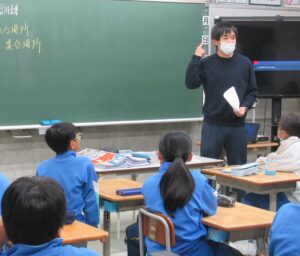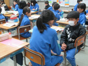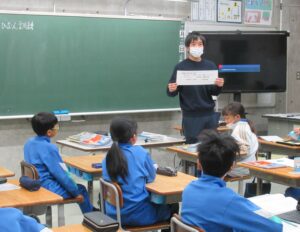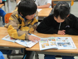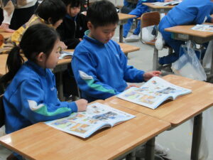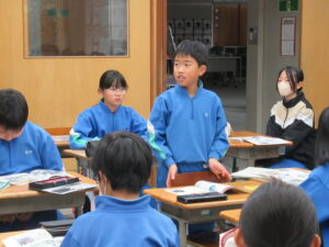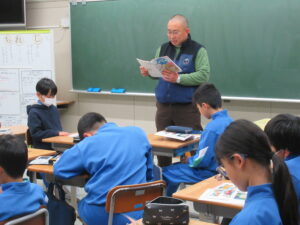 安全タイム【11月14日】 今日の朝学習は、月1回実施している安全タイムでした。2学期からは、KYT学習に重点を置き、「自分の命は、自分で守る」という自己管理能力の育成を図っています。地震が発生したり不審者に遭ったりした時を想定し、どのように行動すればよいか真剣に考える子供たちの姿が見られました。