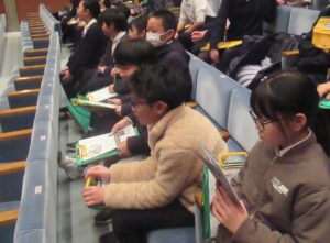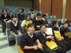 学校巡回公演【5、6年生 11月18日】 入善町内小学校6校の5、6年生が参加して、学校巡回公演がコスモホールで行われました。 今回は文化庁、公益社団法人宝生会様、株式会社影向舎様のご協力により開催されました。 初めて能に触れる子供たちが多いため、音楽を奏でる囃子方、楽器、役割、本日の演目「黒塚」の見どころについて解説していただきました。 子供たちは、能の世界に引き込まれ、「ストーリーが面白かった」「衣装がきれいだった」などと、感想を述べていました。 このような機会をいただいた、関係各位に感謝申し上げます。