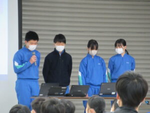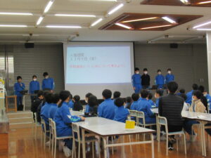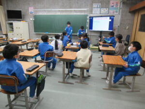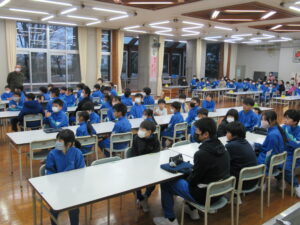全校道徳【12月5日】 今日の朝活動は、全校道徳を行いました。企画委員から、「全校でいじめについて話し合おう」「いじめ(見逃し)0宣言のためにできることを考えよう」と提案があり、縦割り班の号車ごとに話し合いました。 6年生が中心となって、みんなの考えを聞き、いじめについて真剣に考えました。 次回は、各号車で話し合ったことを全校で共有し、3学期に実践していきます。