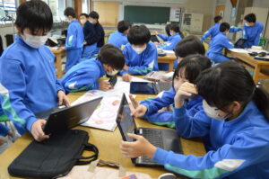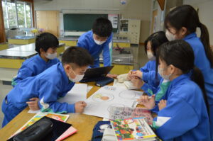 リクエスト給食【6年生 12月12日】 6年生の家庭科では、「まかせてね今日の食事」の学習として、リクエスト給食のメニューを考案しています。栄養バランスに気を付け、昔の給食の再現、みんなの好きそうなメニュー等、グループで、思い思いに考えました。今日は、グループごとに決めたメニューのポスターやシナリオをつくりました。 全校の皆さんの投票によって、給食となって出されるメニューが決まります。どのような結果になるか、楽しみですね。