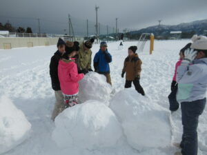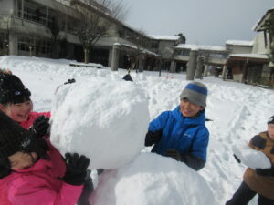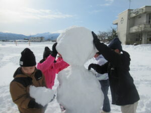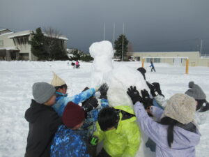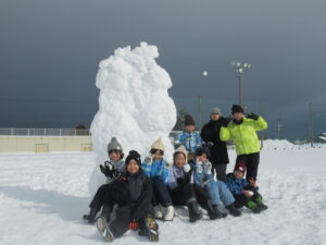 雪遊び【6年生 1月26日】 今日は6年生が2時間目に雪遊びをしました。グラウンドにたくさん積もった雪を思う存分使って、グループ別で巨大雪だるまづくりをしました。とっても楽しいそうでした。桃李小学校でのよい思い出になりましたね。