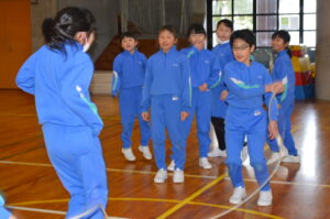 大会の締めくくりには、グループに分かれての大縄跳びを行いました。上の学年が下の学年に縄に入るタイミングを教えたり、下の学年が上の学年の華麗なジャンプに憧れの視線を送ったりと、異学年が一緒になって取り組む楽しさを存分に味わうことができました。