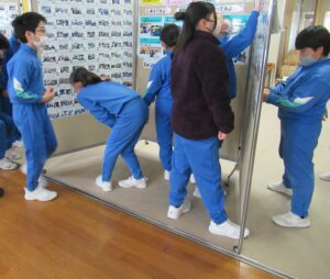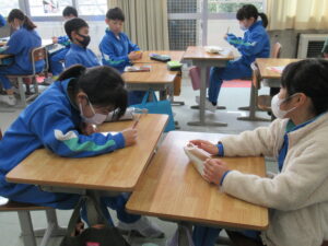 いいとこタイム【全校 2月5日】 今日の朝活動は、「いいとこタイム」でした。「いいとこメガネ」をかけて、友達の「いいところ」を伝え合ったり、「全校のいいところ」掲示板を見て、全校のよさや頑張りを承認したりしていました。今回は、1、3、5年生の様子を紹介します。 【1年生】 【3年生】 【5年生】