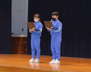 今日は、全校合唱や6年生の退場シーン、そして各学年の出し物の最終確認を行いました。 体育館に響き渡る歌声からは、「6年生に感謝を届けたい」という下級生の強い思いが伝わってきました。どの学年も、細かな動きや言葉のタイミングを一つ一つ丁寧に確認し、準備を万全に整えました。