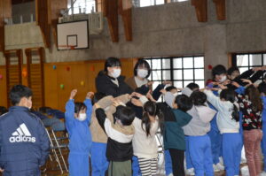 いよいよ明日は、待ちに待った「6年生を送る会」の本番です。 本日、全校児童が集まり、最後の全体リハーサルを行いました。