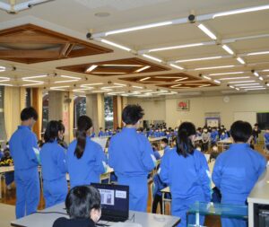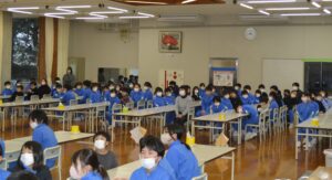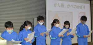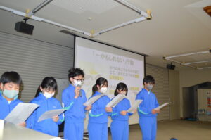 3月3日の安全タイムに、保健委員会が校内の安全に関する提案発表を行いました。