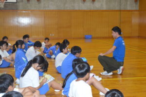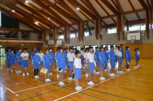 まず、宿泊学習での4つのポイント①チャレンジ②仲間とつながる③自然の力を知る④ルールやマナーを考えるについてお話しいただきました。併せて、守ってほしい3つのこと①時間②場所③片付けについてお話しいただき、皆さんは、自分たちの活動を思い描きながら、真剣に聞いていました。