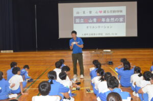 5・6年生は、3限に国立立山青少年自然の家から丸山先生をお招きし、宿泊学習の事前学習を行いました。