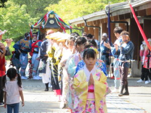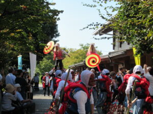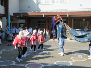 椚山八幡社秋季大祭【10月14日】 10月11日(土)、12日(日)の2日間にわたって、椚山八幡社の秋季大祭があり、本校で御神輿御巡行が行われました。椚山地区の4年生児童を中心に、小天狗や踊り子、旗持ちとして地域の行事に参加する姿が輝いて見えました。 地域の方々が大切にしている伝統文化を体験し、次の世代に引き継いでいることを実感した祭礼でした。