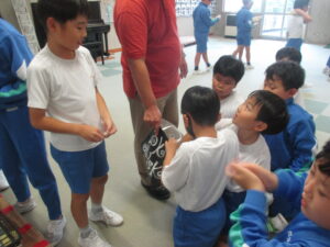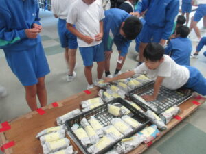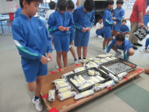 さつまいもを持ち帰りました【3、4年生 10月17日】 先日掘ったさつまいもを、くじ引きで分けました。子供たちは、「俺のとったの大きい!」「自分のはたくさん入ってそう!」と嬉しそうい見せ合っていました。5月に自分たちで植えたさつまいもを、自分たちで掘ることで、普段何気なく食べている食材がどれだけの労力が必要かを、少しは感じられたようです。ご家庭で調理して、味わってみてください。