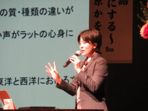 本日、コスモホールで、入善町小学校合同講演会が開催され、町内小学校の4、5、6年生が参加しました。この講演会は、入善町が寄付金を活用し、子供たちの夢の実現に向けて、各界の第一線で活躍されておられる方を講師に迎え、開催しているものです。本年度は、動物作家・昆虫研究家として活躍しておられる篠原かをり様を講師にお迎えし、ご講演をいただきました。
