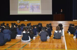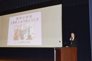 2学期の終業式を実施しました。校長からは、2学期に桃李っ子皆で取り組んできた「いいとこメガネ」、「地域を知り、地域に触れ、地域に貢献し、その活動の中で学びを進化させる」「桃李げんキッズ」いう3つの目当てについての各学級や委員会等での素晴らしい取組を紹介しました。また、令和8年を迎えるにあたり、今年1年を振り返り、新年の目当てをしっかりもって、スタートしてほしいと、お話ししました。