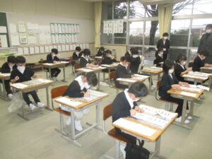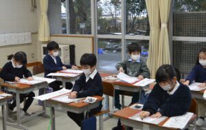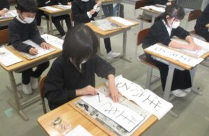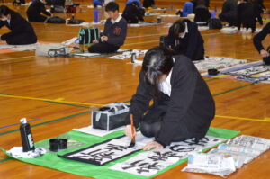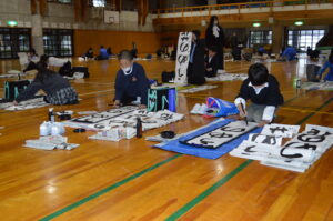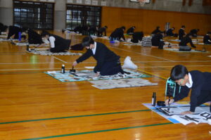 書き初め大会【1月8日】 始業式の後、各学年、新年恒例の書き初め大会を行いました。緊張感が漂う空気の中、筆に思いを込めて、腕を振るっていました。真剣に取り組む子供たちの姿は凜としていて、とても素敵でした。1月9日(金)から15日(木)の期間(16時~17時)、校内書き初め展を開催いたしますので、是非ご覧ください。