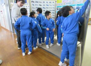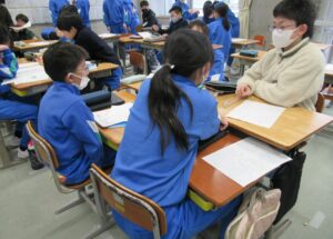 いいとこタイム【全校 1月22日】 今日の朝活動は、「いいとこタイム」でした。各学級で、「いいとこメガネ」をかけて、友達の「いいところ」をたくさん見つけ、伝え合っていました。また、「全校のいいところ」掲示板を見て、全校のよさや頑張りを承認する学年もありました。今回は、2、4、6年生の様子を紹介します。 【2年生】 【6年生】 【4年生】