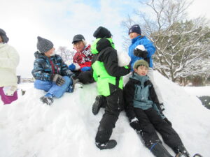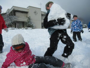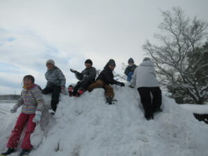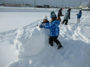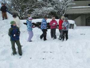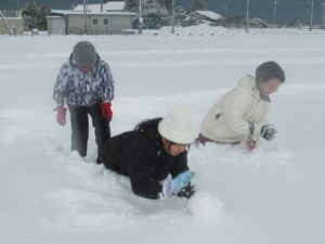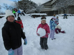 今日は久しぶりに晴れ間が広がり、5年生が1時間目に雪遊びをしました。あちらこちらから歓声が上がり、大喜びで雪遊びをする子供たちの姿が見られました。