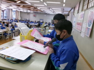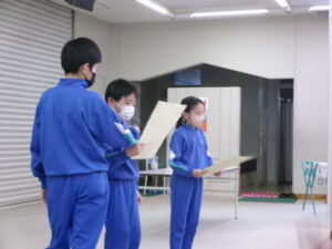 また、今日は、2年生と3年生の代表児童による「給食標語」の発表がありました。 「今日の給食 なんだろう」「いつもありがとう」など、どの標語からも給食を毎日楽しみにしている様子や、作ってくださる方への感謝の気持ちが伝わってきました。素直な心で「食」の大切さを考え、言葉にする子供たちの姿がとても頼もしく感じられた発表の時間でした。