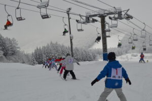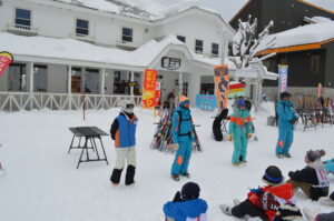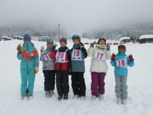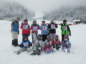 時折雪がちらつく冬空の下、スキー学習を実施しました。