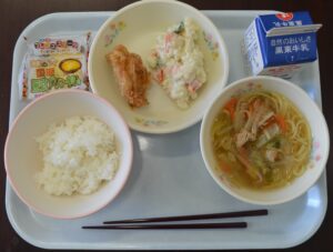 育ち盛りのみんなに嬉しいボリューム満点の献立に、給食の時間前から「今日の給食、最高だね!」と楽しみにする声が聞こえてきました。