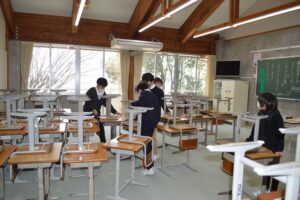 新年度準備【5年生 3月24日】 次年度最高学年となる5年生と教職員で「新年度準備」を行いました。 新しい学年のための机や椅子を運び、大掃除をする5年生の姿は、すでに頼もしい学校のリーダーそのものでした。短時間でテキパキと動いてくれたおかげで、4月の始業式を気持ちよく迎える準備が整いました。5年生の皆さん、本当にありがとう。