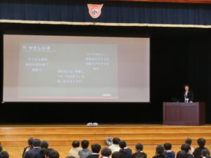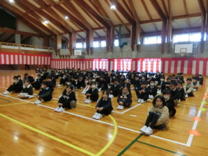 続く始業式では、校長先生から「登校が楽しみになる学校をみんなでつくりましょう」とお話がありました。一つ学年が上がり、きりっとした表情で話を聞く子どもたちの姿からは、「頑張るぞ」という強い決意が感じられました。