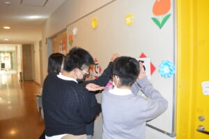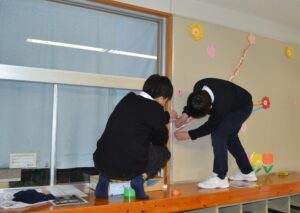 「新1年生が気持ちよく過ごせるように」と、体育館の椅子を美しく並べたり、1年教室を華やかに飾り付けたりと、自分たちで仕事を見付け、てきぱきと動く姿が非常に頼もしく感じられました。