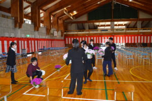 いよいよ明日に控えた入学式。 本日、新6年生と教職員で、新1年生を迎え入れるための会場設営や校内清掃を行いました。