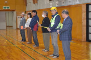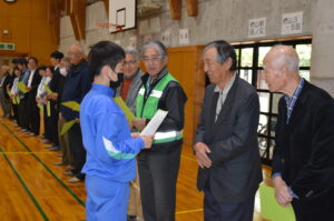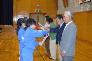続いて、本年度も引き続きお世話になる「パトロール隊」、ならびに「こども110番の家」の皆様へ、児童からお礼の手紙をお渡ししました。